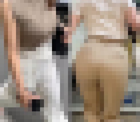 ベージュパンツで包まれた