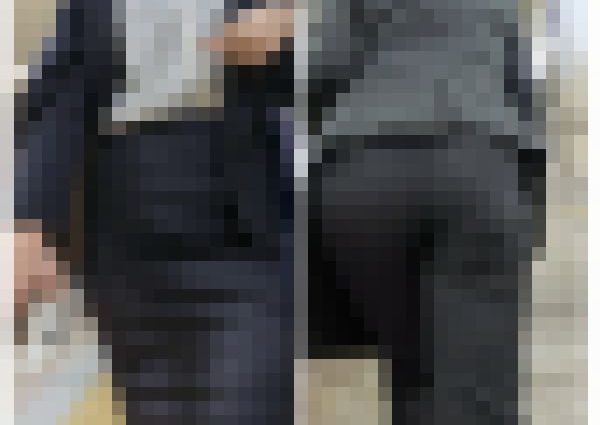 顔はぼかしておりますが、口元がチラッと映るだけでわかるようなくっきりしたビューティーフェイス。しかも、ジャケットのフロントを開けているので薄手のブラウスがクッキリと。その内側のインナーも透けて見えております…。